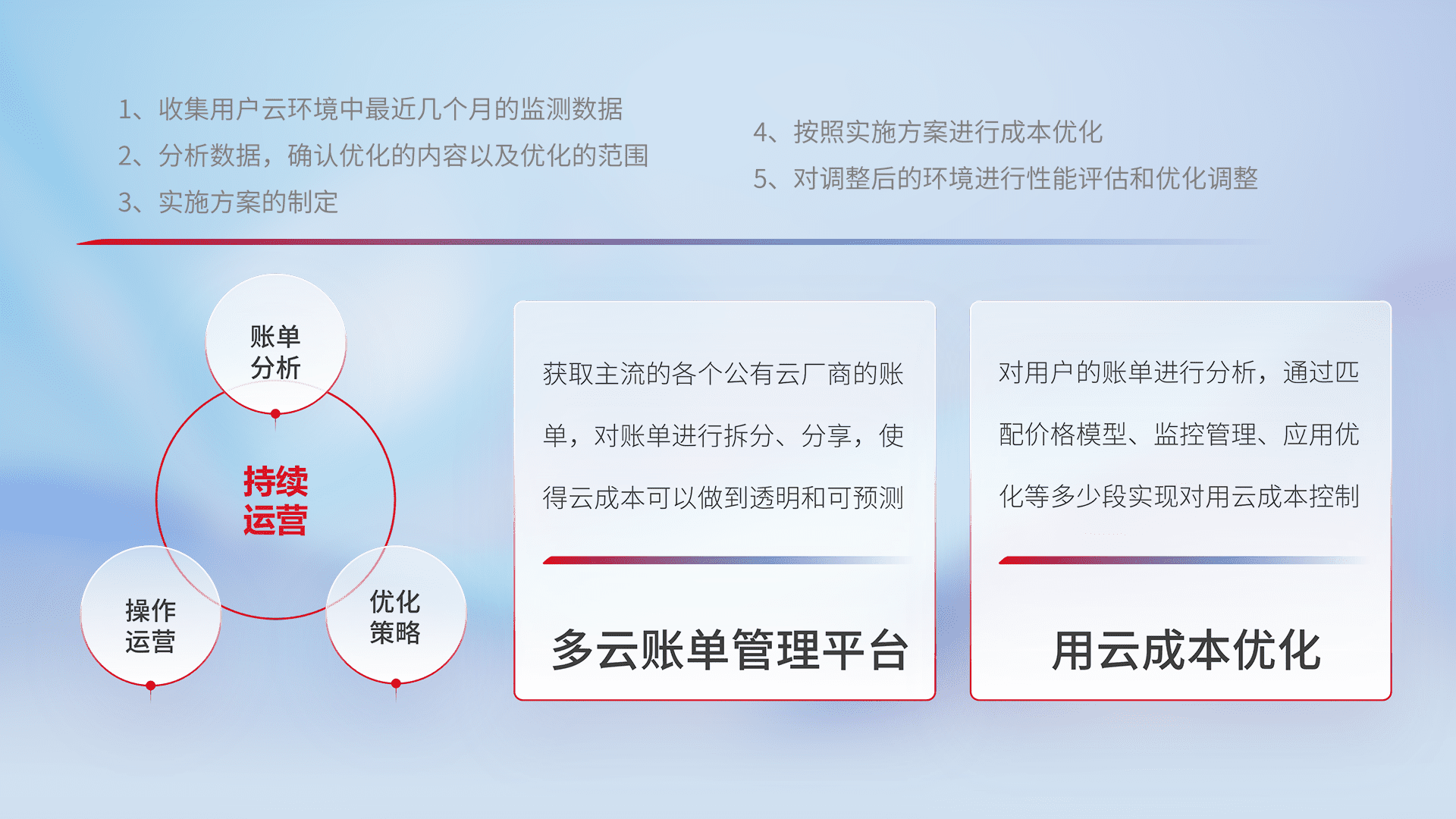 监控业务系统资源开销,,对资源的消耗精确计量,,实现费用的透明化管理,,不断提升资源使用率,,调整资源购买方式,,,,降低资源费用成本,,,用云成本可预测、、、、用云费用可优化,,,,云资源配额有据可依。。。